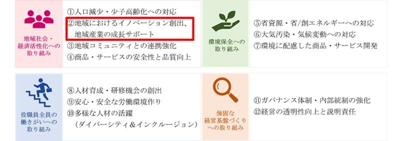 山口フィナンシャルグループは、持続可能な社会の実現に貢献していくために、「グループサステナビリティ方針」を策定し、この方針に基づき、重点的に取り組むべきESG課題である「マテリアリティ」を特定しております。本件は、12のマテリアリティの中で「②地域におけるイノベーション創出、地域産業の成長サポート」の実現に資する取り組みです。
